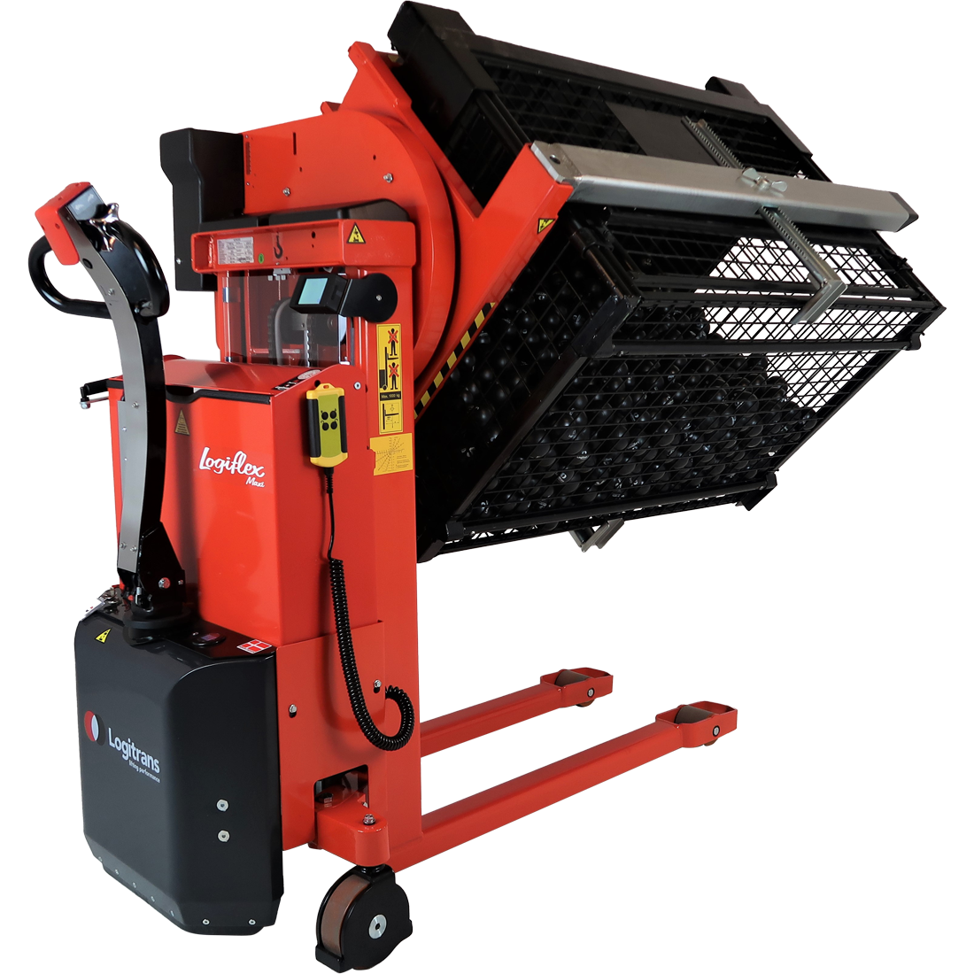 Rotator med justerbare boksholdere kan vippe kasser, så du kan nå indholdet uden at strække dig og belaste din ryg. Kassen kan også vendes med bunden i vejret, så den tømmes fuldstændigt.